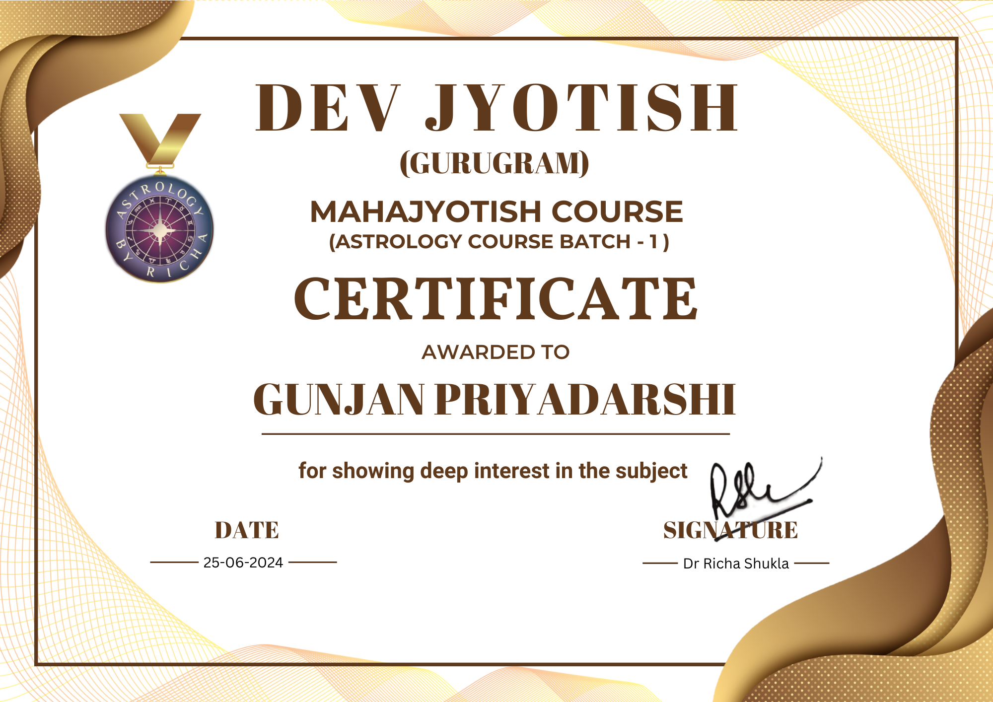 It was great learning experience from Guru Maa Dr Richa Shuklaji. She has very dense knowledge about Astrology subject with her great experience she makes very easy to understand for even new students.