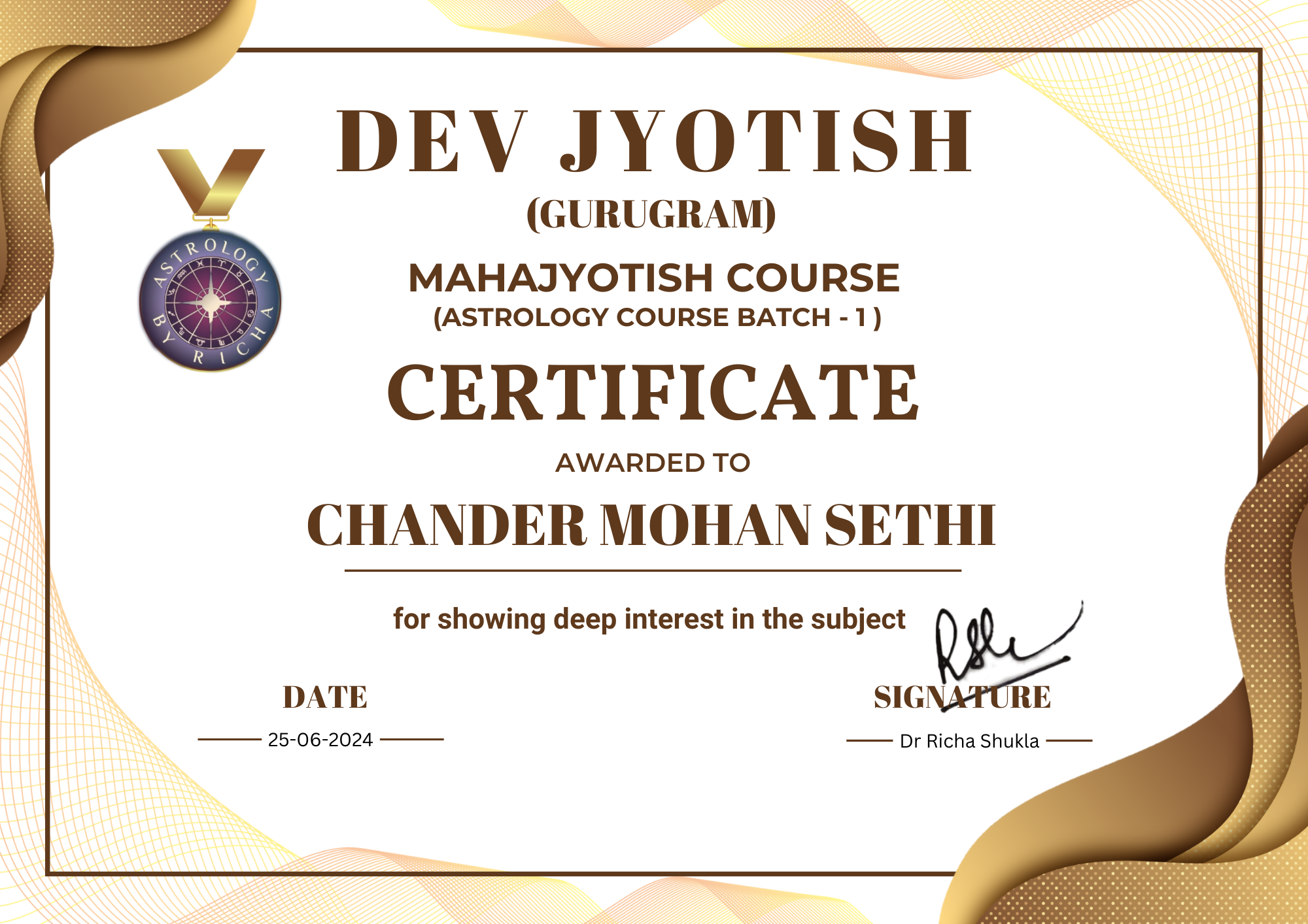 Dr. Richa Shukla's Nakshatra course has transcended my initial expectations, presenting a scholarly expedition into the realm of Nakshatras, complete with a discernible emphasis on their pragmatic applications within astrology. The meticulously curated course content, characterized by its systematic structure, served as a conduit for her elucidations, which were not only delivered with a rare clarity but also penetrated the depths of astrological intricacies. Also, her command over the subject matter not only elevated my comprehension of Nakshatras to a higher echelon but also bestowed upon me a newfound proficiency in applying this knowledge to intricate astrological analyses. God Bless !! GS Chaudhry